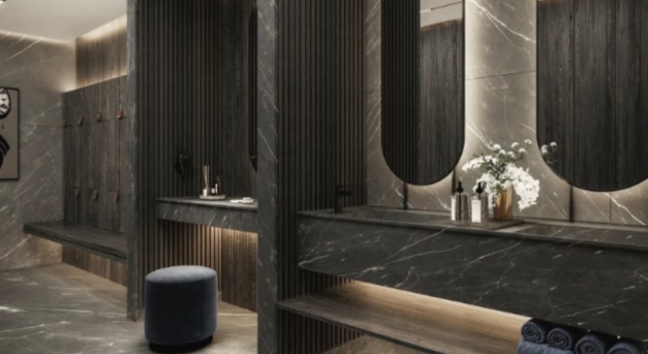 • حمام‌های لاکچری با نور طبیعی و طراحی مینیمال