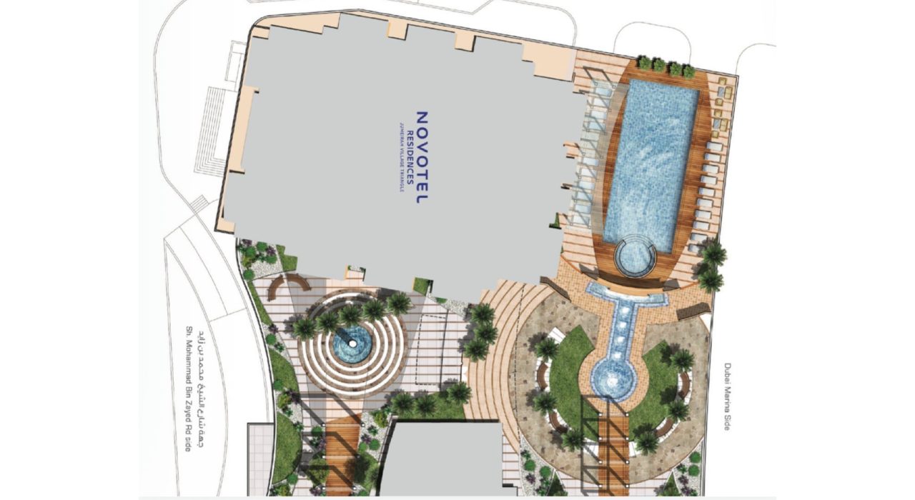 پروژه نووتل رزیدنس در جمیرا ویلیج تراینگل (JVT)، در تقاطع خیابان شیخ محمد بن زاید و خیابان الخیل قرار دارد.