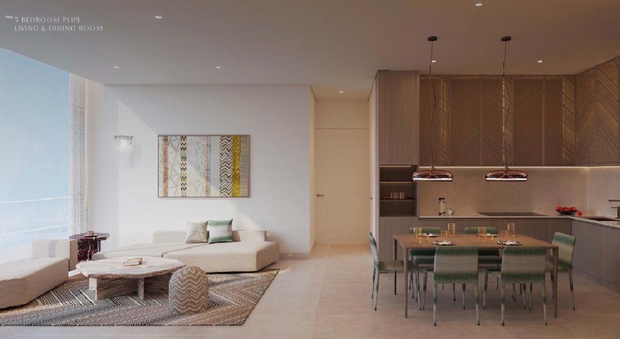 - آپارتمان ۳ خوابه پلاس (3BR Plus):متراژ کل از ۱,۲۹۷ تا ۲,۳۶۰ فوت مربع.