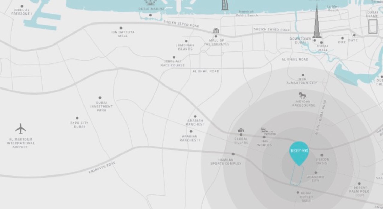 پروژه REEF 995 در منطقه استراتژیک Dubai Land Residence Complex واقع شده است.