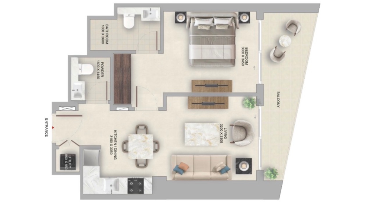 واحد مورد نظر آپارتمان ۱ خوابه (One Bedroom Apartment) و 2 خوابه (Two Bedroom Apartment) با امکانات اضافی (شامل پودر روم و بالکن) است.