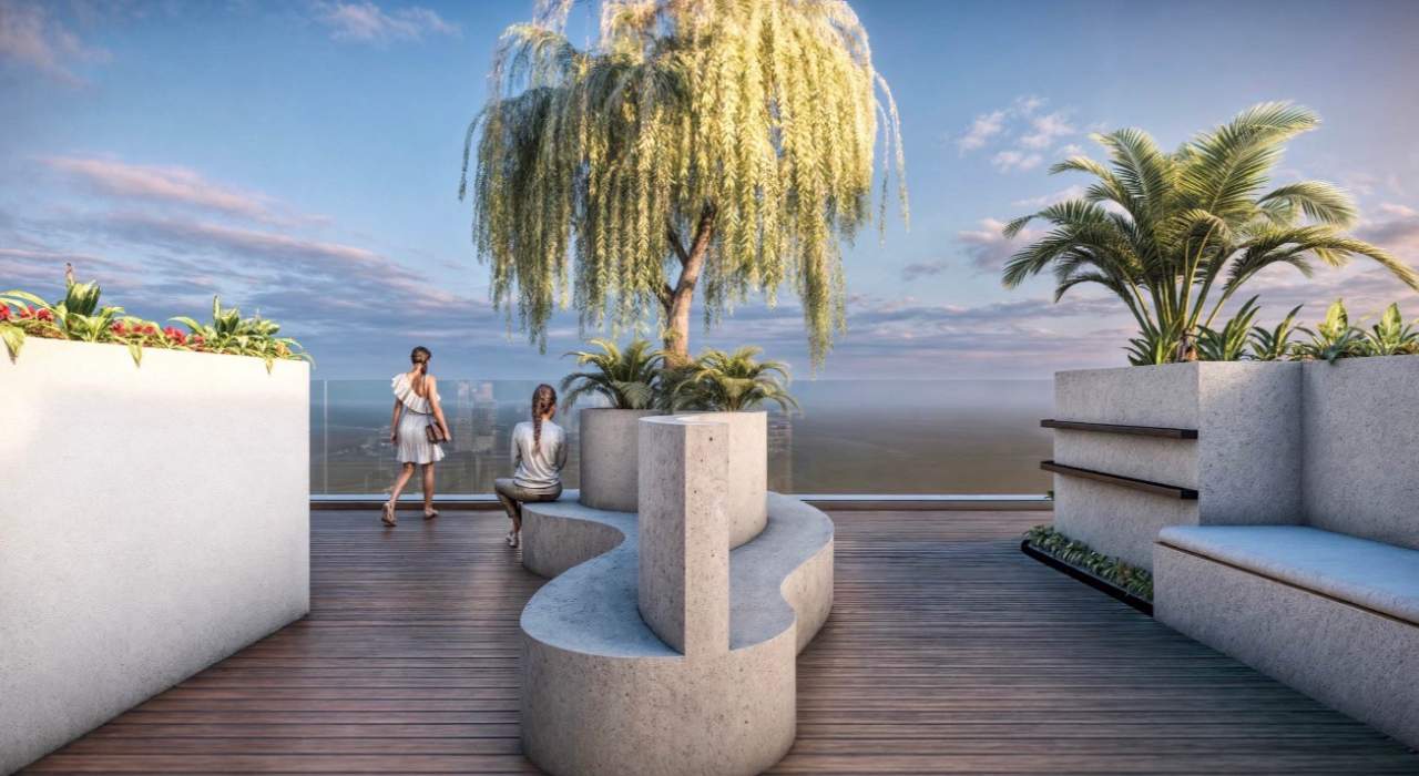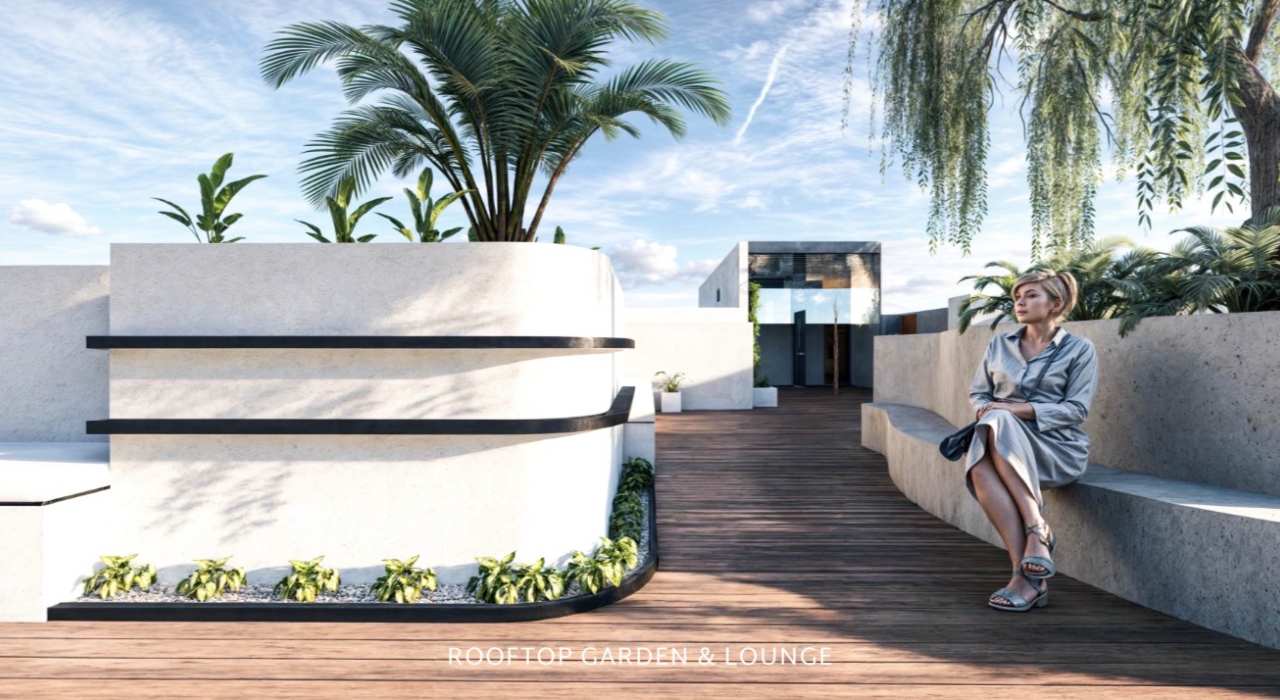 •  باغ پشت‌بام با فضای استراحت (Rooftop Garden & Lounge)